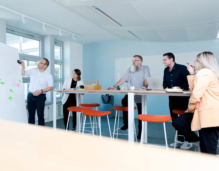 - Wir arbeiten crossfunktional zusammen und unterstützen uns gegenseitig in unserer Weiterentwicklung.