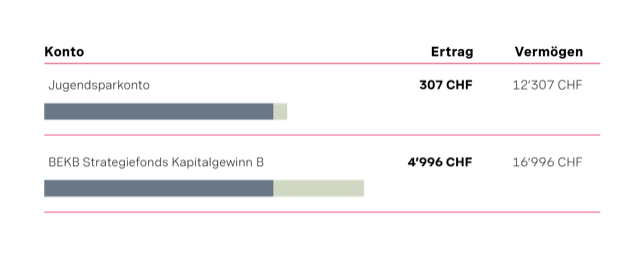 Wenn du mit dem Investieren starten willst, musst du zunächst wissen, wie viel Geld du anlegen kannst. Unser Tipp: Erstelle dein Budget mit Hilfe des Finanzassistenten der BEKB. Er gibt dir einen guten Überblick über deine Finanzen und hilft dir, deine Ausgaben im Griff zu haben. Der Vorteil gegenüber einer normalen Budgetplanung: Die Ausgaben werden automatisch kategorisiert, und du kannst das Monats- oder Jahresbudget einhalten. Sind alle Fixkosten, Sicherheitsreserven, kurzfristigen Sparziele und die Vorsorge abgedeckt, kannst du die frei verfügbaren Mittel anlegen. Das lohnt sich, auch wenn dies nur 100 Franken im Monat sind: Selbst mit kleinen Beiträgen kannst du über einen längeren Zeitraum dein Vermögen aufbauen und dir später etwas Schönes gönnen.