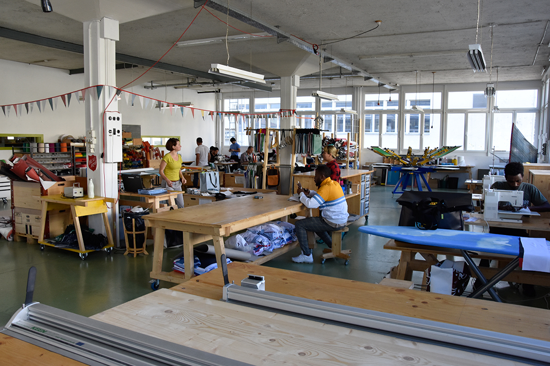 Nähmaschinen rattern, als wir den lichtdurchfluteten, farbenfrohen Raum betreten. Hier ein neugieriger Blick, da ein freundliches Lächeln – ansonsten wird hoch konzentriert gearbeitet. «Das ist wichtig, schliesslich wollen wir eine hohe Qualität abliefern. Quantität und Qualität sind in der Schweizer Wirtschaft sehr wichtig, und das sollen die Teilnehmenden hier lernen,» erklärt uns der Produktionsleiter von HandsOn, Jonathan Wüthrich. Nach ihrer Zeit bei HandsOn sollen die Flüchtlinge fit für den Arbeitsmarkt sein.