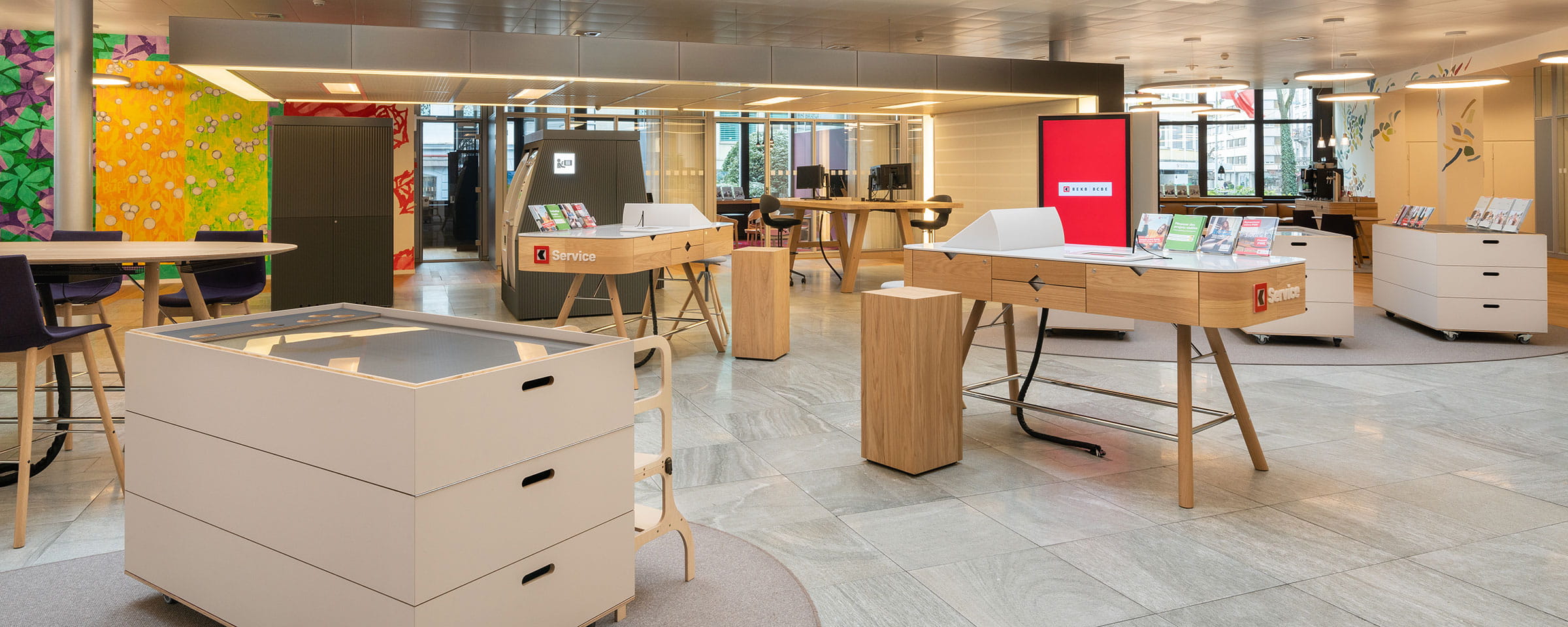 Mit den veränderten Kundenbedürfnissen wandeln sich auch Aussehen und Funktionalität der Standorte. Im Vordergrund stehen die Förderung des Kundendialogs sowie die klare Fokussierung auf die Beratung. Mit dem BEKB-Atelier wurde eine Plattform geschaffen, wo sich die regionale Bevölkerung trifft und ihr Wissen zu Finanz- und Gesellschaftsthemen erweitern und vertiefen kann. Die BEKB-Ateliers stehen unseren Kundinnen und Kunden zur Raumnutzung zur Verfügung. Die modernen BEKB-Standorte erlauben es den Finanzcoaches, schneller und flexibler auf Kundenwünsche einzugehen.