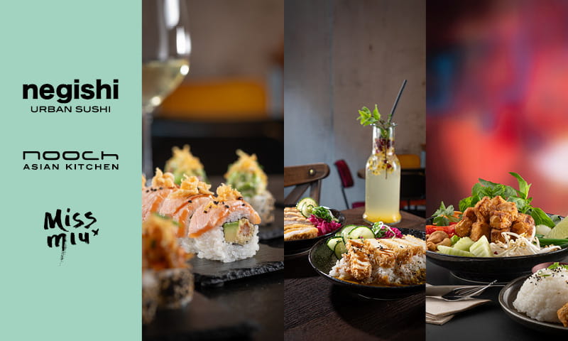 Für genussvolle Momente bei Negishi Sushi Bar, Nooch Asian Kitchen oder Miss Miu, die in Erinnerung bleiben. Wähle dein Lieblingskonzept und freue dich auf eine Portion Fernweh auf dem Teller.