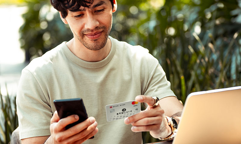 Debitkarte: Alle Debitkarten sind zwingend mit einem Konto verbunden. Der Vorteil davon: Man gibt nur das Geld aus, das man auch wirklich hat. Die neue Kartengeneration Stu Debit Mastercard ist einiges vielseitiger als die frühere Maestro-Karte. Denn Sie können damit nicht nur Bargeld beziehen und kontaktlos bezahlen, sondern auch im Internet einkaufen und Reservationen (z.B. Mietauto) vornehmen – alles ganz einfach und sicher, mit voller Kostenkontrolle. Das ist ideal für den Alltag wie auch für Ferien auf der ganzen Welt. Mit einem Privatkonto Basic/Plus/Young – und im KMU-Paket sowie beim Jugendkonto – ist bei der BEKB eine Debit Mastercard (bzw. Stu Debit Mastercard) kostenlos inbegriffen.