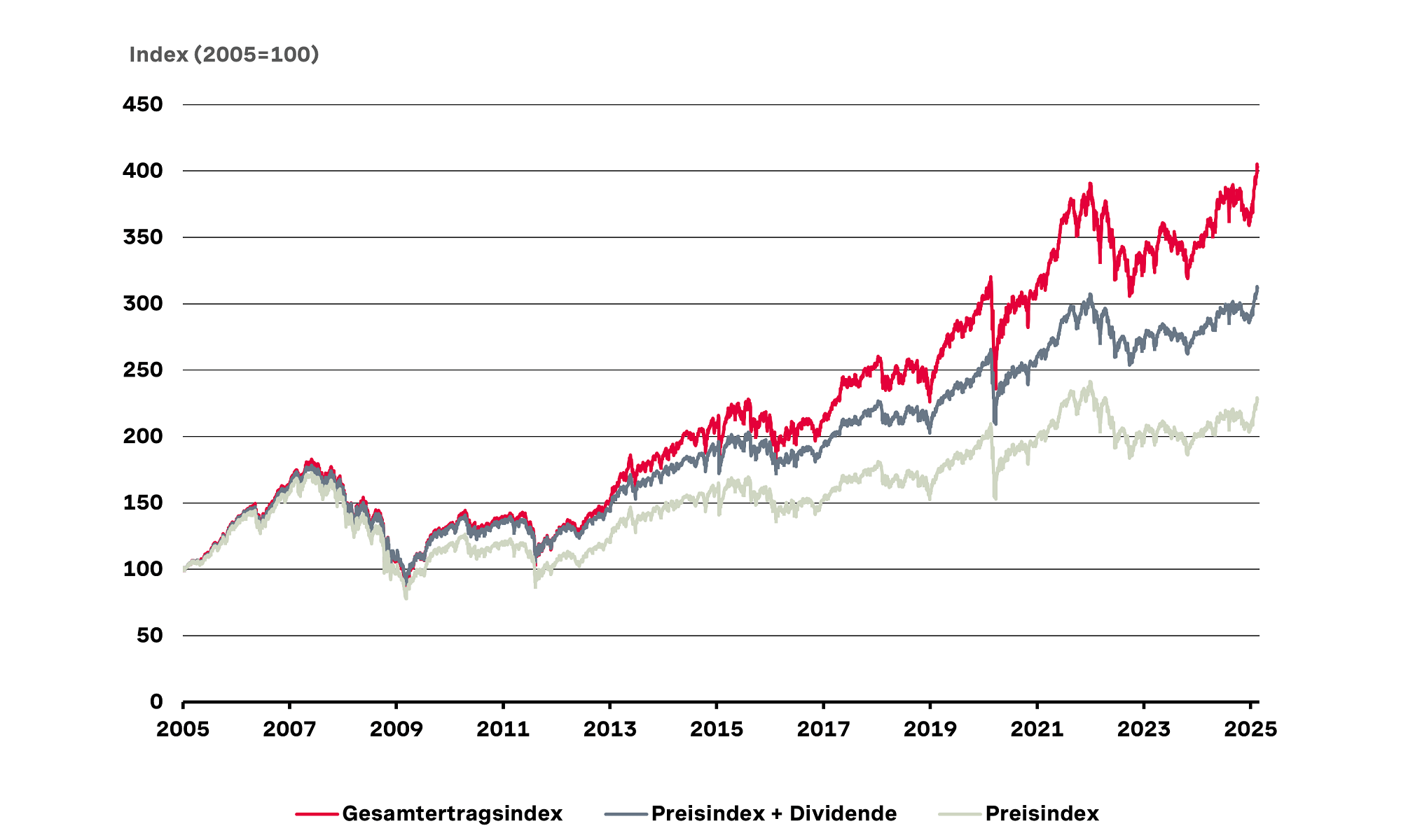 Die Dividende spielt eine entscheidende Rolle für den langfristigen Anlageertrag. Wer in den letzten 20 Jahren auf Schweizer Aktien gesetzt hat, erzielte eine durchschnittliche Rendite von 4,2 Prozent jährlich. Durch die Reinvestition der Dividenden konnte dieser Wert auf durchschnittlich 7,2 Prozent steigen. Der Zinseszinseffekt zeigt sich besonders deutlich mit einem längeren Anlagehorizont: Durch die wiederholte Reinvestition erzielen Anleger auch auf das reinvestierte Kapital Dividenden.