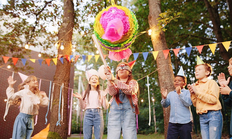 - Piñata-Vergnügen: Der Brauch aus Mittelamerika hat auch hier längst viele Fans gefunden. Bunt gestaltete Figuren aus Pappmaché werden mit Süssigkeiten oder kleinen Geschenken gefüllt. Die Kinder dürfen die Piñata mit Stöcken zerschlagen und die Belohnungen ernten.