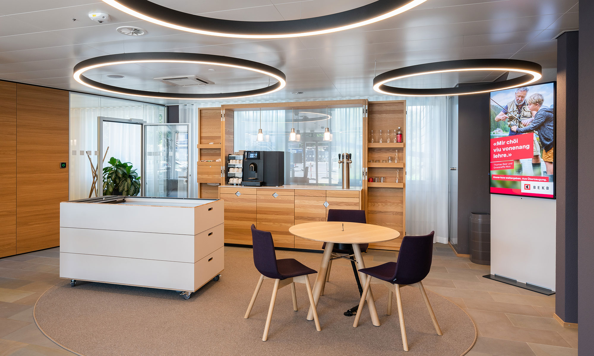 Mit den veränderten Kundenbedürfnissen wandeln sich auch Aussehen und Funktionalität der Standorte. Im Vordergrund stehen die Förderung des Kundendialogs sowie die klare Fokussierung auf die Beratung. Mit dem BEKB-Atelier wurde eine Plattform geschaffen, wo sich die regionale Bevölkerung trifft und ihr Wissen zu Finanz- und Gesellschaftsthemen erweitern und vertiefen kann. Die BEKB-Ateliers stehen unseren Kundinnen und Kunden zur Raumnutzung zur Verfügung. Die modernen BEKB-Standorte erlauben es den Finanzcoaches, schneller und flexibler auf Kundenwünsche einzugehen.