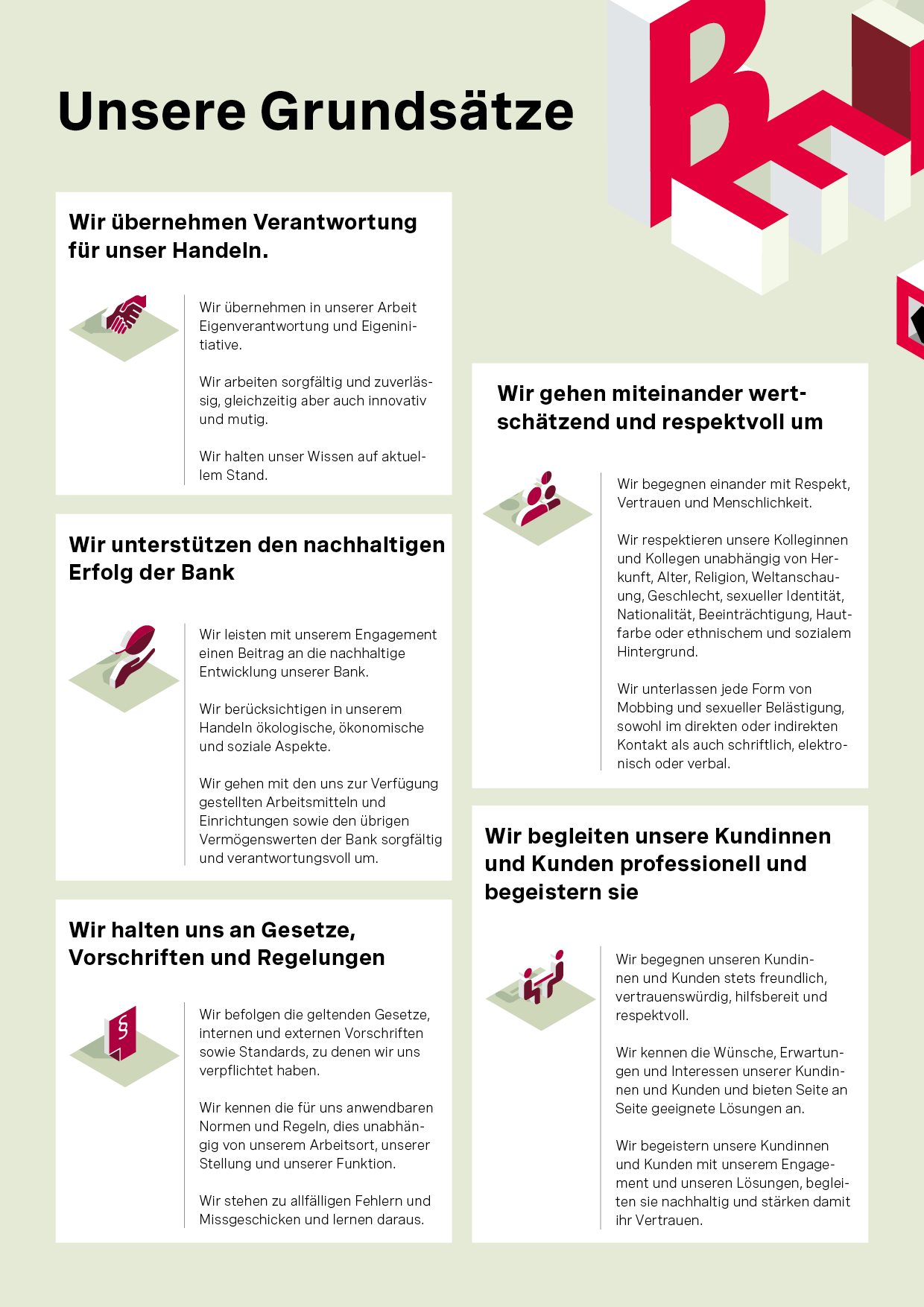 Wir geben und schaffen Vertrauen durch unser offenes und transparentes Handeln sowie unsere finanzielle Stabilität.