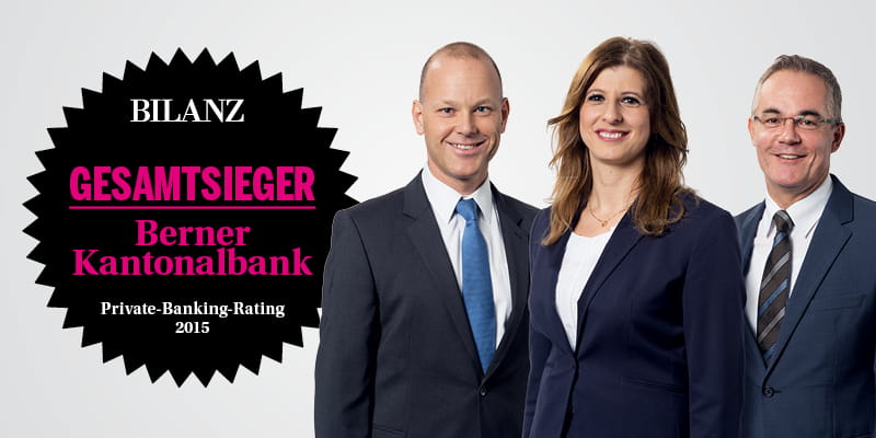 Die BILANZ zeichnet in der Ausgabe vom 2. April 2015 das Private Banking der BEKB als das Beste der Schweiz aus. Die Bank ist zum zweiten Mal in Folge sowohl Gesamtsiegerin als auch Siegerin in der Kategorie «Universalbanken regional». Seit der Einführung des Private-Banking-Ratings im Jahr 2009 ist die BEKB die einzige Bank, die jedes Jahr ausgezeichnet wurde. Die Anerkennung von renommierter und neutraler Seite unterstreicht die Qualität der Vermögensberatung der Bank.