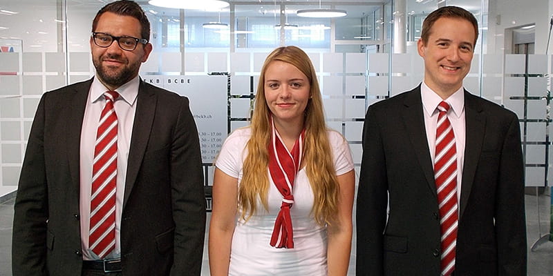 Florian Bachofner (Niederlassungsleiter, rechts) betreut neu mit Nina Gottier (Kundenberaterin) und Marco Vogel (Stv. Niederlassungsleiter) die Kundinnen und Kunden der BEKB Schwarzenburg.