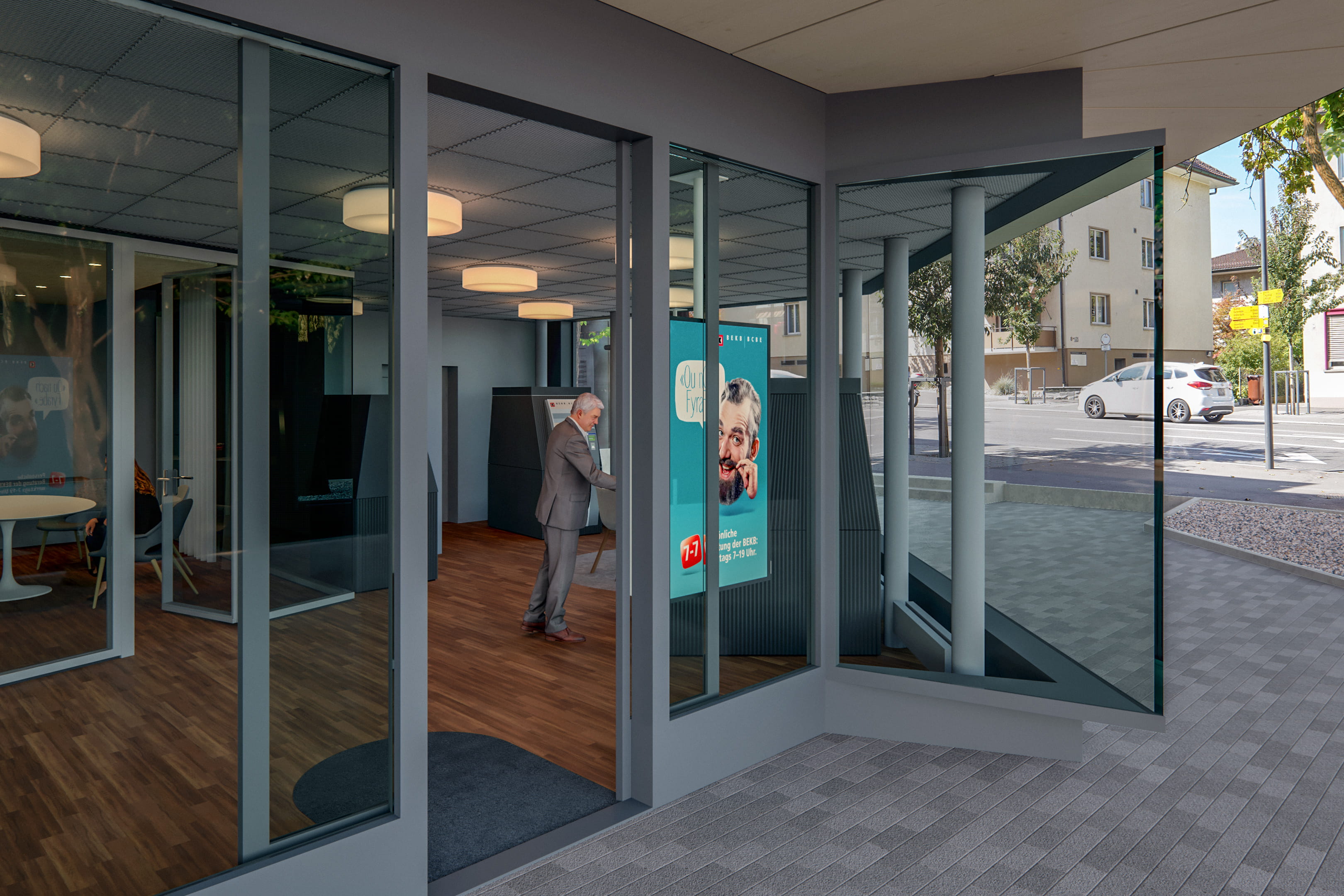 Die neue BEKB Wabern verfügt über eine vielseitige Selbstbedienungszone, die rund um die Uhr zugänglich ist. Sie bietet den Kundinnen und Kunden mehr Flexibilität und neue Möglichkeiten: Für Bargeldtransaktionen in Schweizer Franken und in Euro stehen neu 24/7 ein Bancomat für Ein- und Auszahlungen in Noten sowie für Einzahlungen in Schweizer-Franken-Münz zur Verfügung. Via Maestro-Karte kann man zukünftig einfach und sicher vom Standort aus aufs BEKB Kundenportal zugreifen – viele Bankgeschäfte können so direkt vor Ort erledigt werden. Dazu Sybille Studer: «Früher war man für viele Bankgeschäfte an die Anwesenheit eines Kundenberaters und damit an die Öffnungszeiten gebunden. In der neuen 24-Stunden-Zone sind die Kundinnen und Kunden flexibler und können eine grosse Anzahl Dienstleistungen dann erledigen, wenn es für sie praktisch ist – ganz unabhängig davon, ob ein Kundenberater vor Ort ist oder nicht.»