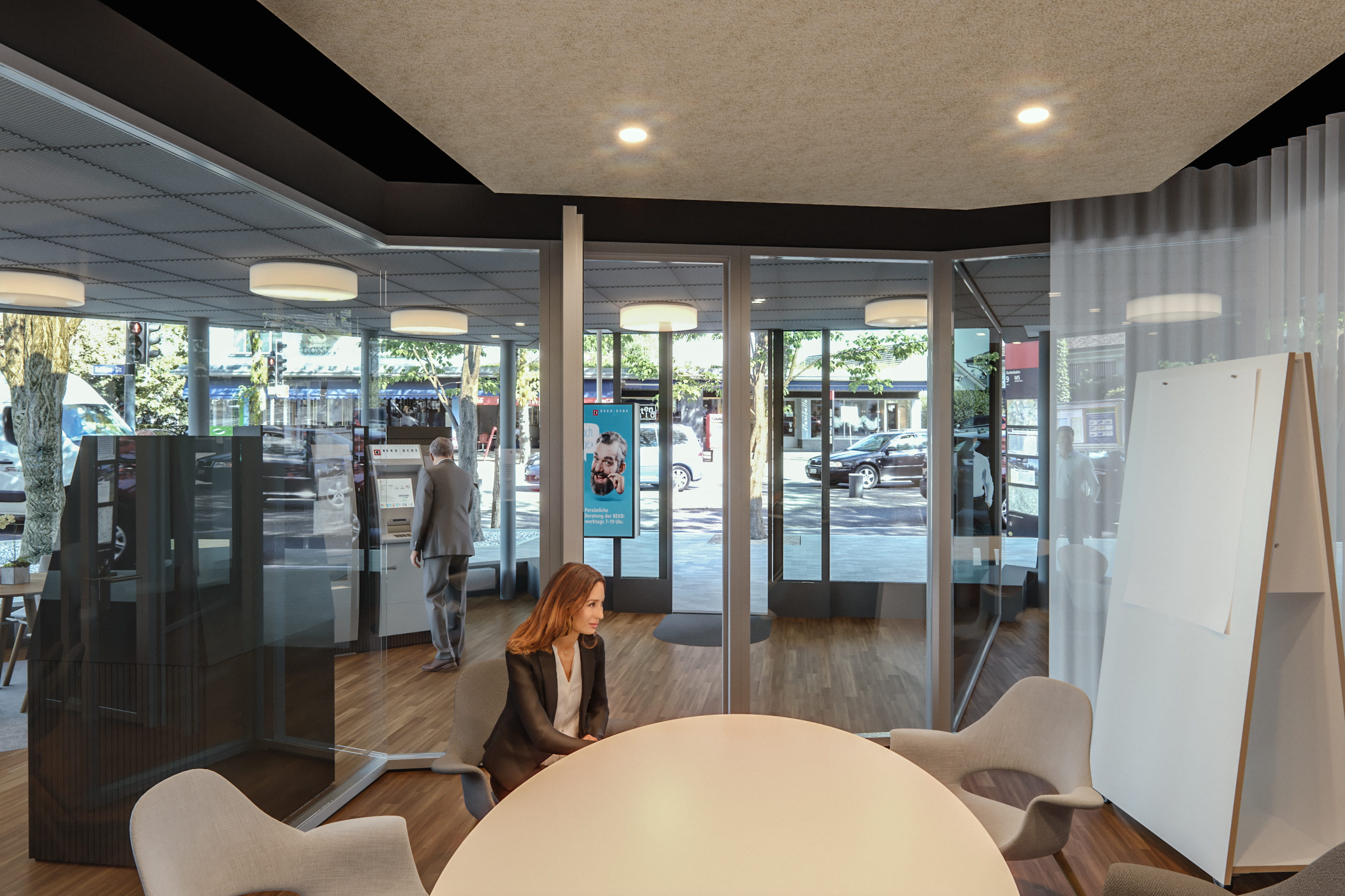 Die Bedeutung des klassischen Schaltergeschäfts hat in den letzten Jahren stetig abgenommen; heute stehen die Beratung, der persönliche Kontakt und die digitalen Angebote im Vordergrund. Dieser Entwicklung wird in der neuen BEKB Wabern Rechnung getragen. Im Zentrum stehen die flexible, selbstständige Erledigung von Bankgeschäften sowie die persönliche und ganzheitliche Beratung der Kundinnen und Kunden. Der Schalter ist nicht mehr mit Bargeld ausgestattet, aber: «Bargeld bleibt wichtig. In der BEKB Wabern kann man weiterhin selbstständig Bargeld beziehen und einzahlen – und dies neu sogar rund um die Uhr! Das Bargeld verschwindet nicht aus unseren Räumlichkeiten», versichert Sybille Studer.