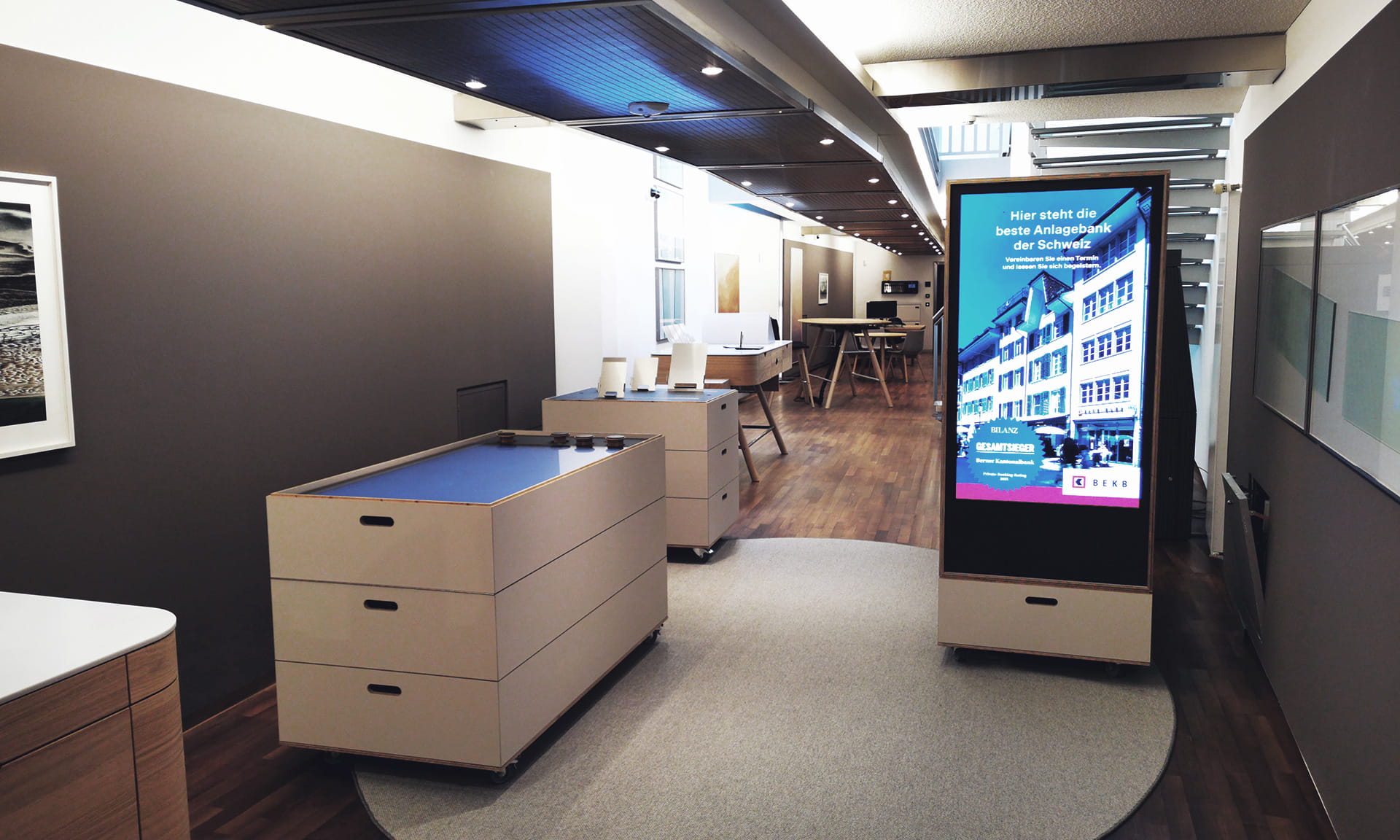 Der Standort sieht nicht nur neu aus – er funktioniert auch anders als bisher und bietet viele neue Möglichkeiten. In der neuen Selbstbedienungszone, die 24 Stunden geöffnet ist, steht für die Ein- und Auszahlung von Noten in Schweizer Franken und in Euro sowie für die Einzahlung von Münz in Schweizer Franken ein Automat zur Verfügung. Zudem ist die Zone mit dem BEKB Service Portal ausgestattet, worüber die Kundinnen und Kunden mit ihrer Maestro-Karte direkt aufs BEKB Kundenportal, der E-Banking-Lösung der BEKB, zugreifen können. Viele Bankgeschäfte, wie beispielsweise die Bezahlung von Rechnungen oder die Anpassung von Daueraufträgen, können so zeitunabhängig, einfach und in sicherer Umgebung erledigt werden. «In der neuen Selbstbedienungszone sind unsere Kundinnen und Kunden flexibler und können dank dem erweiterten Automatenangebot eine grosse Anzahl Dienstleistungen dann erledigen, wenn sie Zeit haben. Selbstverständlich unterstützen wir sie weiterhin bei der Erledigung ihrer Bankgeschäfte», sagt Patrick Ingold, Leiter der BEKB Solothurn. Ausserdem erhalten die Kundinnen und Kunden vor Ort Unterstützung im Umgang mit digitalen Banklösungen, zum Beispiel bei der Nutzung und Einrichtung des BEKB Kundenportals, der BEKB App oder von Twint, einer Bezahlmethode mit dem Smartphone.