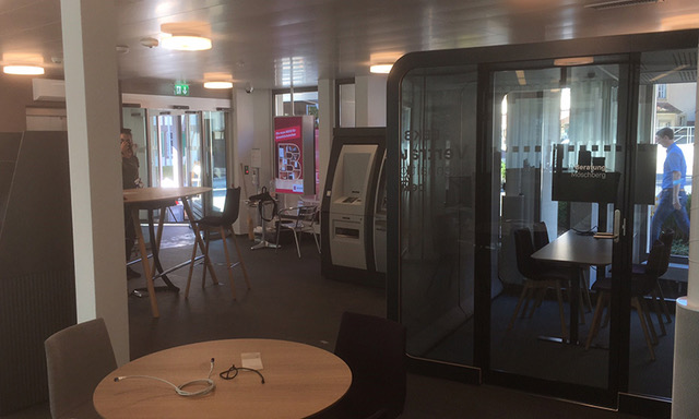 Der Standort sieht nicht nur neu aus – er funktioniert auch anders als bisher und bietet viele neue Möglichkeiten. In der neuen Selbstbedienungszone steht für Ein- und Auszahlungen von Noten in Schweizer Franken und in Euro sowie für die Einzahlung von Münz in Schweizer Franken ein Automat zur Verfügung. Zudem ist die Zone mit dem BEKB Service Portal ausgestattet, worüber die Kundinnen und Kunden mit ihrer Debitkarte direkt aufs BEKB Kundenportal, der E-Banking-Lösung der BEKB, zugreifen können. Viele Bankgeschäfte, wie beispielsweise die Bezahlung von Rechnungen oder die Anpassung von Daueraufträgen, können so zeitunabhängig, einfach und in sicherer Umgebung erledigt werden. «In der Selbstbedienungszone sind die Kundinnen und Kunden flexibler und können dank dem erweiterten Automatenangebot eine grosse Anzahl Dienstleistungen dann erledigen, wenn sie Zeit haben. Selbstverständlich unterstützen wir die Kundinnen und Kunden weiterhin bei der Erledigung ihrer Bankgeschäfte», sagt Christian Durtschi, Leiter der BEKB Grosshöchstetten. Ausserdem erhalten die Kundinnen und Kunden vor Ort Unterstützung im Umgang mit digitalen Banklösungen, zum Beispiel bei der Nutzung und Einrichtung des BEKB Kundenportals, der BEKB App oder von TWINT, einer Bezahlmethode mit dem Smartphone.