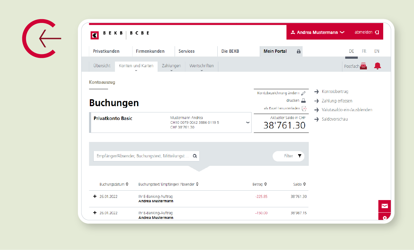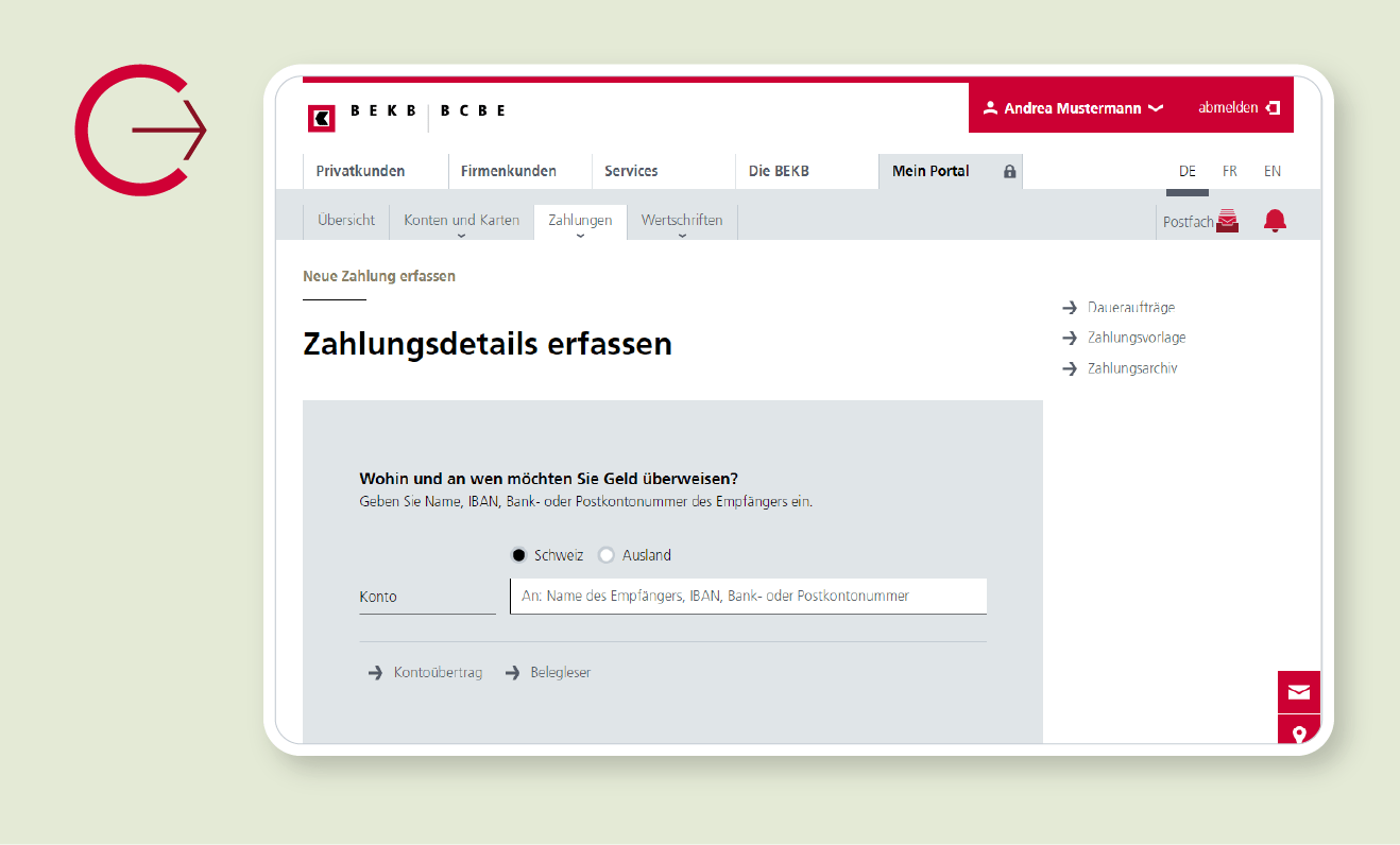 - Sichere Zahlungseinlieferung sowie -freigabe im BEKB E-Banking