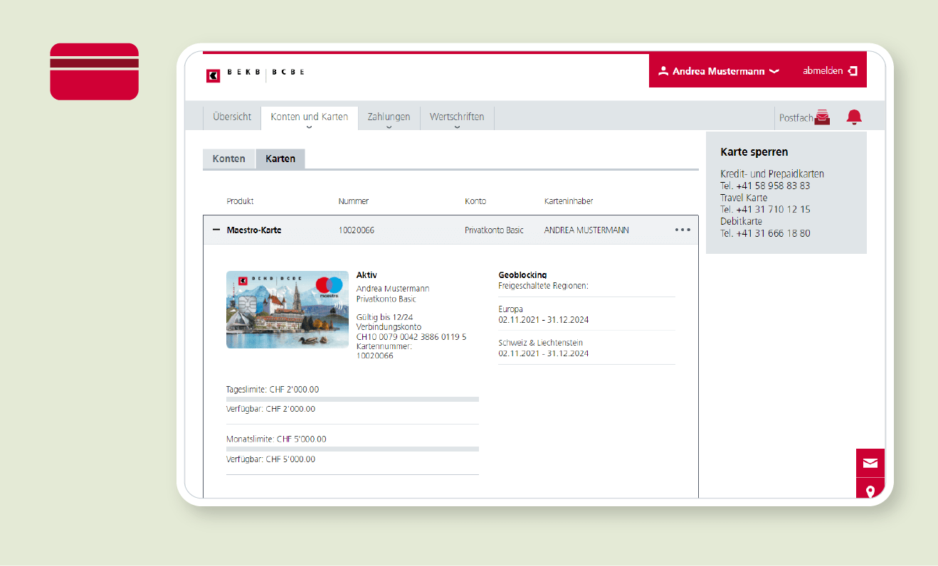 - Kartenlimiten und weitere Kartenfunktionen anzeigen und anpassen